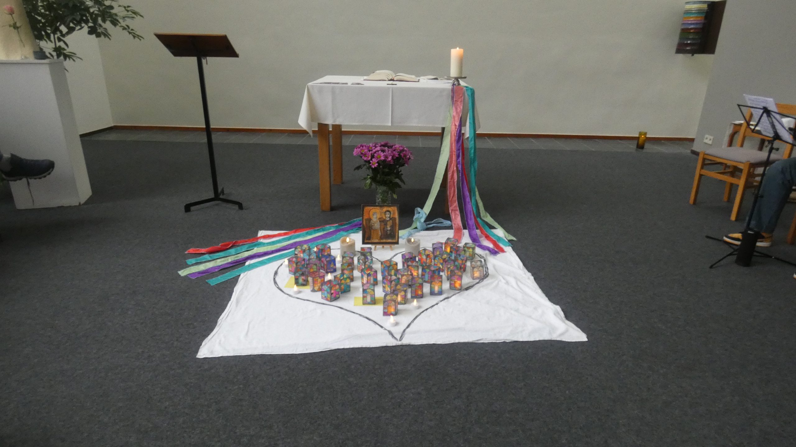 Une expérience dont il fut fait écho le lendemain auprès des derniers arrivés de « La Pommeraie » d’Ellignies Ste Anne. On était au complet pour creuser ces 2 images : oui, dans nos existences, il y a des temps, une part de « noir » (tristesse, deuil, isolement, colère, incompréhension…) mais aussi de petites lumières capables de le faire reculer (amitié, partage, prière, une parole de Jésus, de petits signes personnels… La matinée de ce samedi passa donc vite pour nos 3 petits groupes de réflexion.